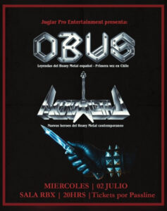 La histórica banda española de heavy metal Obús confirma su esperado debut en Chile. Tras más de cuatro décadas de trayectoria y marcando un hito en la escena ibérica, el cuarteto liderado por Fortu Sánchez y Paco Laguna aterrizará por primera vez en Santiago este miércoles 2 de julio desde las 20 h. El encuentro será en el Sala RBX, en una noche cargada de clásicos y energía que promete quedar en la memoria de los fanáticos del fierro.